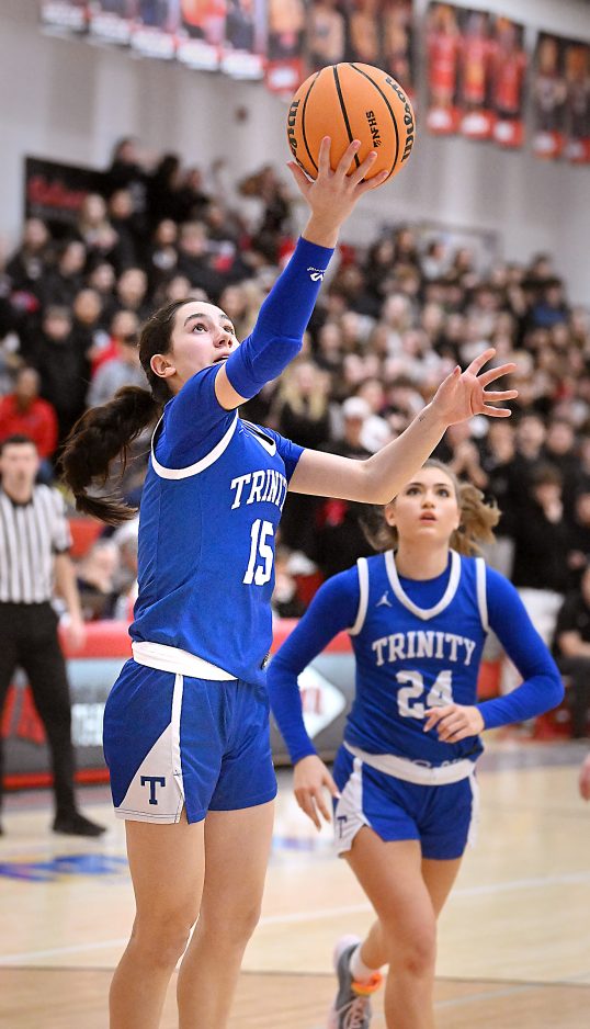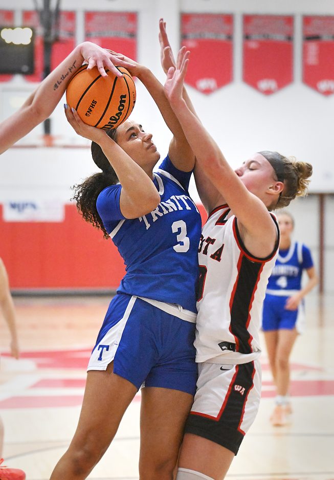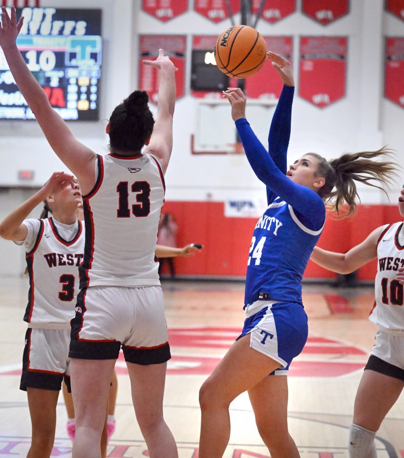Trinity led by 10 with 3:50 remaining after Gabby Reig made a three-pointer, but West Allegheny scored 10 unanswered to tie the game.