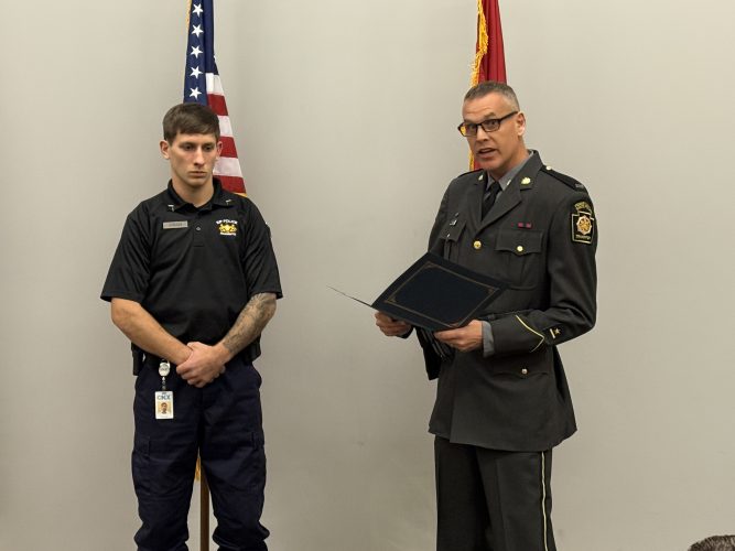 State police gives commendation to cadet who pulled driver from burning car