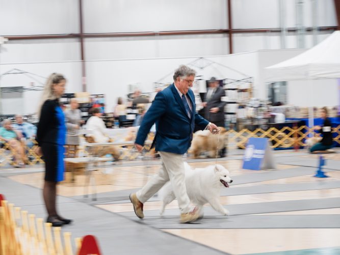 The sound of scissors snip-snipping, blow dryers softly rumbling, human voices swirling about and the occasional dog bark filled the Hazel and JW Ruby Community Center in Morgantown, W.Va., April 26, as day two of the 2024 Black Diamond Cluster Dog Show got underway.