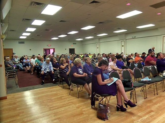 Brownsville residents with blue ribbons on their lapels packed the Sons of Italy Hall Tuesday night to voice their concerns about a proposal to disband Brownsville Police Department.At last month’s meeting, borough council voted 4 to 3 to advertise an ordinance to disband the department. The ...