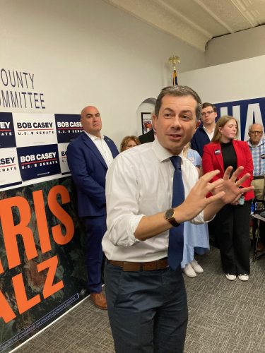 With Election Day a little more than a week away and with “fundamental issues of decency” at stake, U.S. Secretary of Transportation Pete Buttigieg stopped at Washington County’s Democratic Party headquarters Friday afternoon to urge supporters of Kamala Harris’ presidential campaign ...