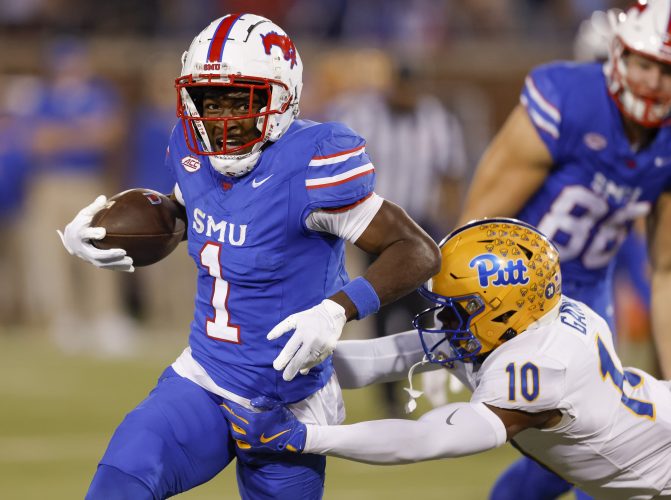 DALLAS — Brashard Smith ran for 161 yards with a 71-yard sprint for the first of his two rushing touchdowns and made a nifty tiptoe catch for another score as No. 20 SMU overwhelmed previously undefeated and 18th-ranked Pitt 48-25 on Saturday night to keep the Mustangs tied for the conference ...