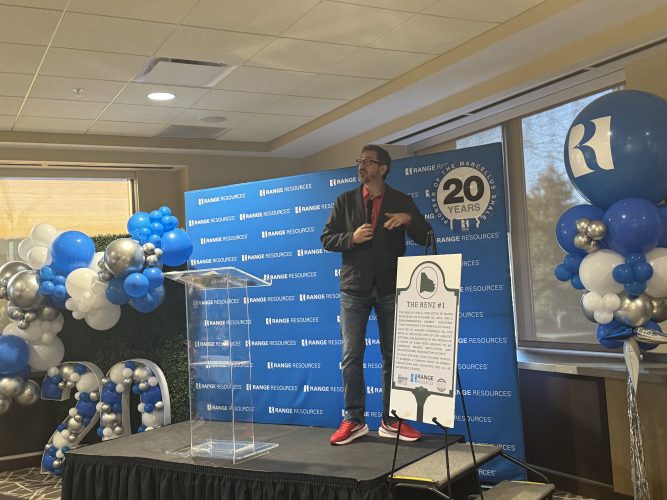 “Happy Renz-iversary,” said Range Resources Vice President of Operational Planning Tony Gaudlip at a celebration held Tuesday at the company’s Southpointe headquarters.