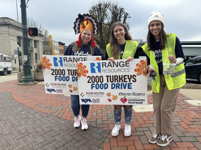 There were bubbles, cow bells, turkey hats, colorful signs, and plenty of enthusiasm as Range Resources hosted its annual 2000 Turkeys food drive to benefit the 40-year-old grassroots campaign to provide Thanksgiving dinners for Washington County neighbors in need.