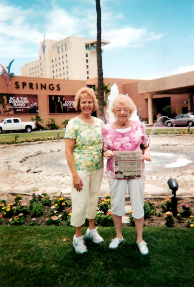 Mary Anne Waltz and her mother Emma Angott took the O-R along to see Emma's brothers Russell Chapman and wife Alice and Tom and wife Nicky Chapman for nine days. They are pictured in front of Fantasy Springs Casino in Palm Springs, Calif.