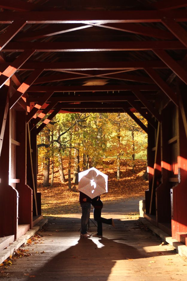 Katelyn Percinsky & Justin Massie under the covered bridge in Mingo Park. (Allison E. Evans)