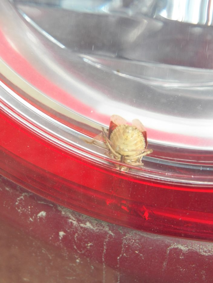 This is a good place for a stinkbug! †Myrta Litman found this inside my back tail light.