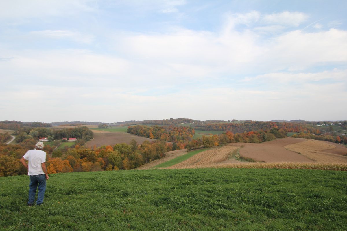 Milan Yilit observing his farm and Buffalo Village changing into fall colors near Avella, PA. (Allison Evans)