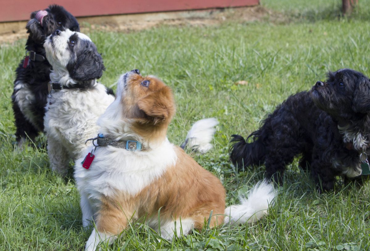 Scooter, Snoopy, Odie, and Izzy wait for a treat in Claysville. (Nathan Ealy)