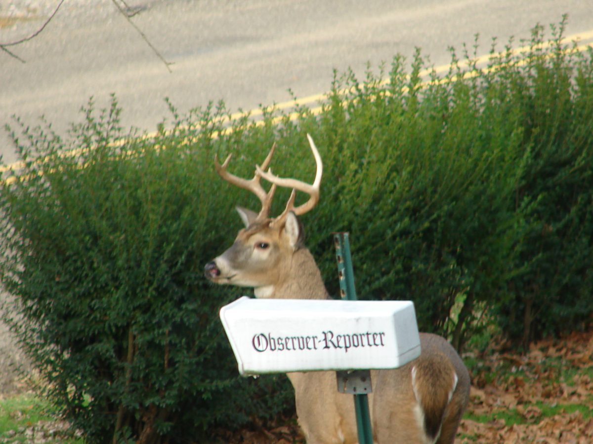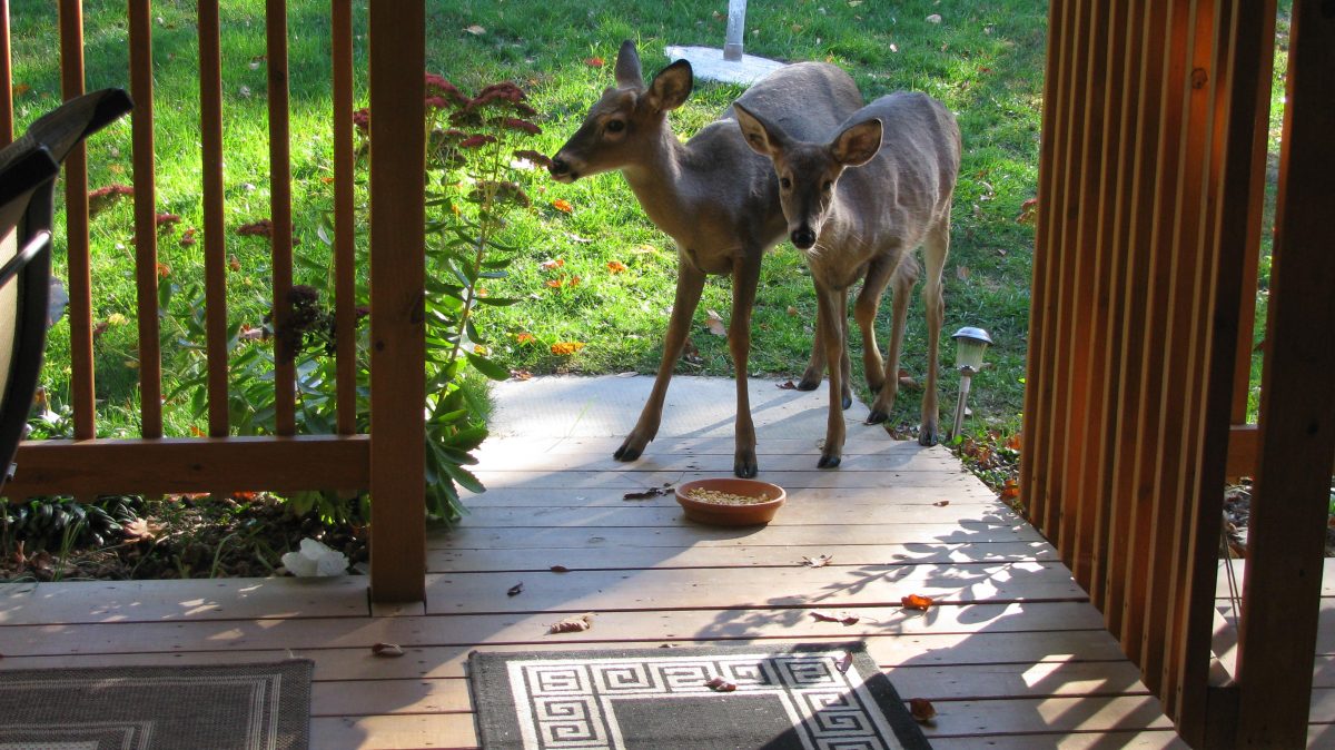 Three deer wondered into our backyard on Oct. 22 and enjoyed what remained of our garden and most of the grapes on the grapevine that runs along the side of our yard. None of this is totally unusual, but we live within the city limits, not near any large patch of woods. We have no idea where they came from, but they enjoyed their feast for about 30 minutes. We believe it was the same three deer that return a couple of weeks later, but not much remained to munch on, so they moved on. Photo by Debby Shrump.