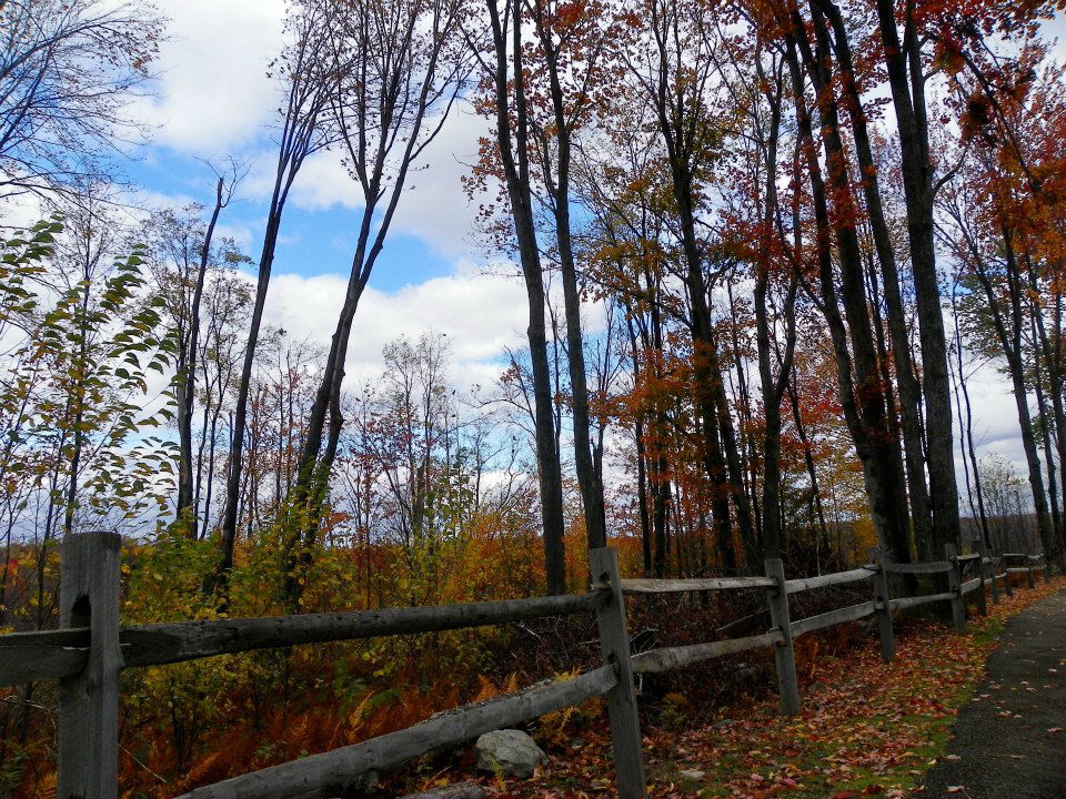 View of a fence with the bright fall leaves while camping in Elk County PA. (Ashley Weaver)