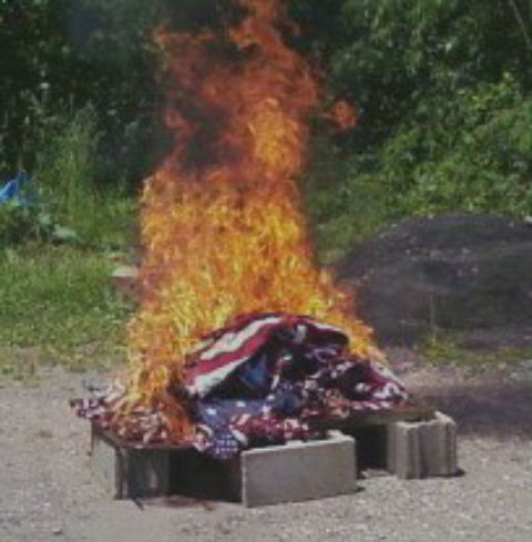 Our Flag which we love and respect, being property retired with dignity and honor at the Marianna American Legion, Memorial Day 2012. †(James S. †Markely)