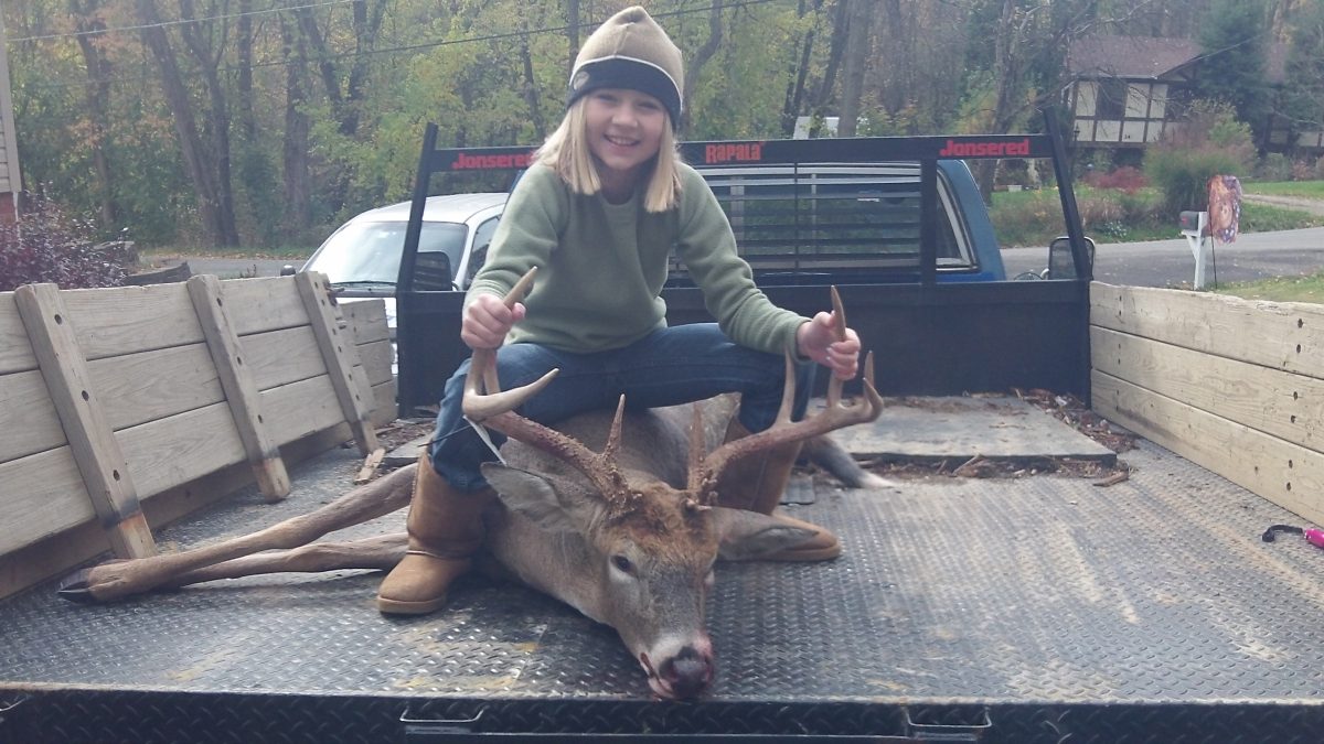 Joseph McNeil's daughter Krista with a 9 Point they got in archery season.