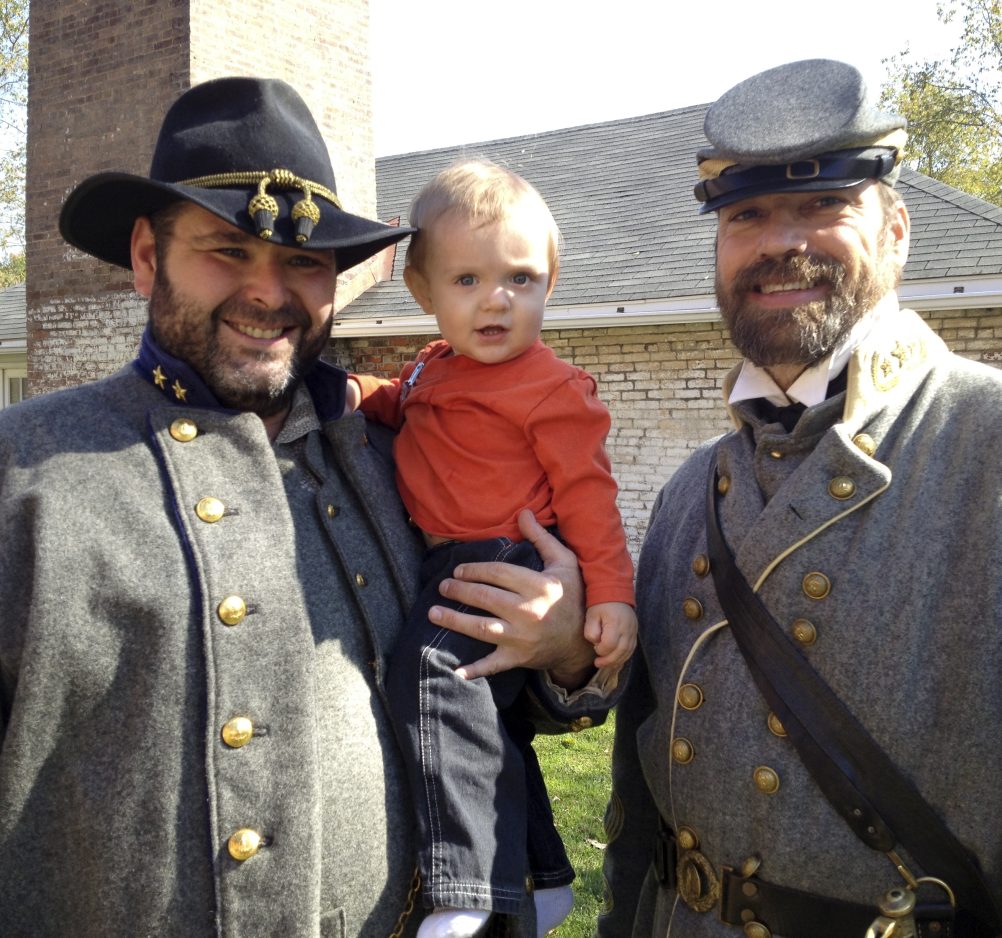 This photo of Kyle Scott Loring, age 11 months, with Civil War reenactment soldiers was taken by Lucille DeFrank at Greene County Historical Society Harvest Festival 2012.