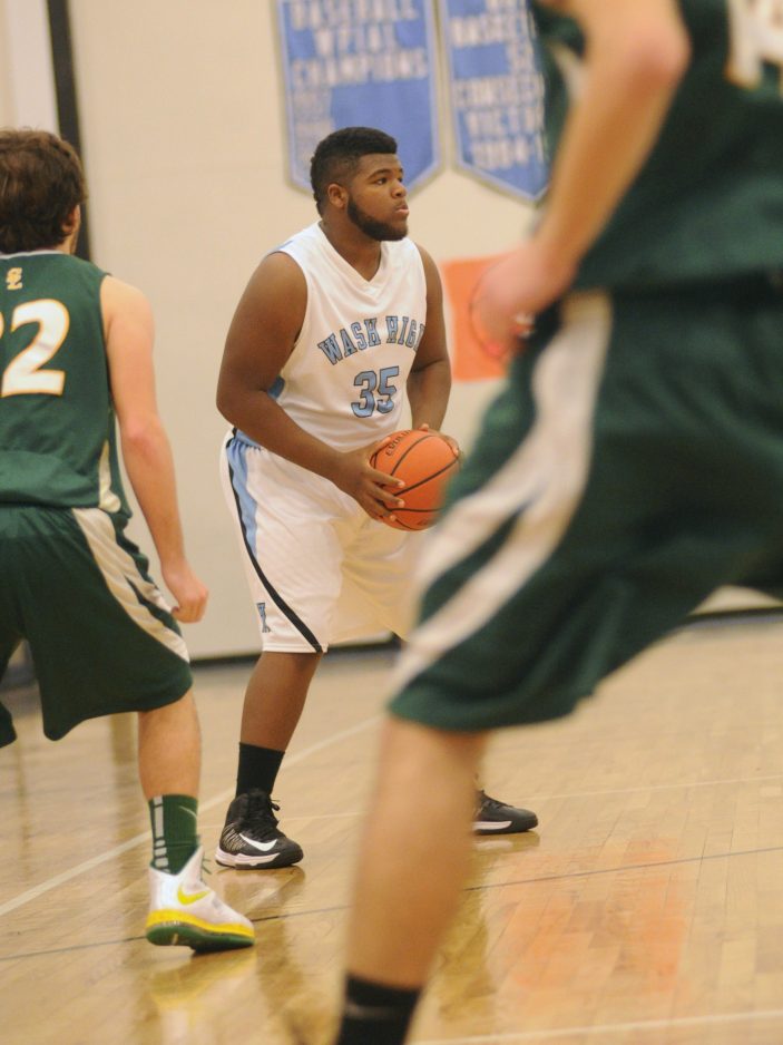 Katie Roupe / Observer-Reporter Seton-LaSalle's Malik White intercepts a rebound to regain possession of the ball against Washington's Jordan Drew during the second half of the game.