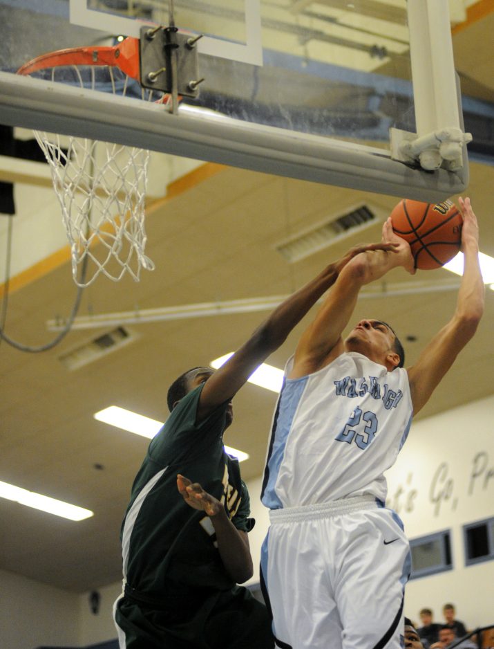 Katie Roupe / Observer-Reporter Wash High's Josh Wise is fouled by Seton-LaSalle's Levi Masua during the fourth quarter of Tuesday night's game. Washington fell to Seton-LaSalle 45 to 51.