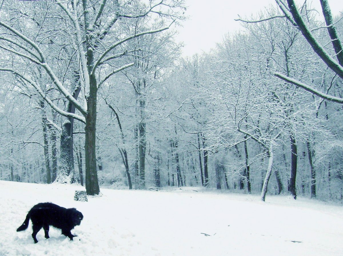 This photo taken by Susan Jennings shows Onix enjoying the snow at the Washington Park.