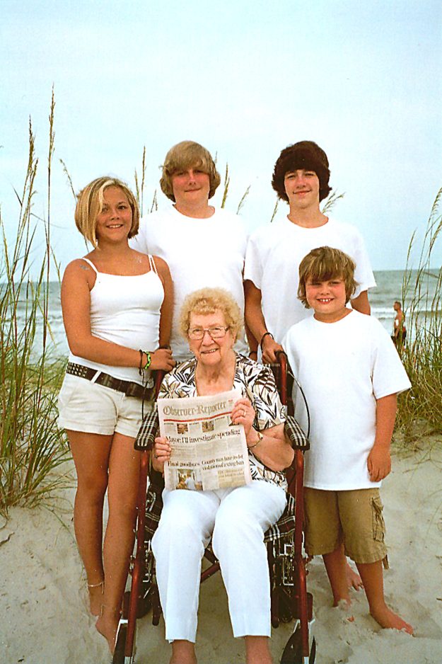 Mary Ann Ashmore of Washington, took her annual trip to Hilton Head Island, S.C., with four of her great-grandchildren and their families. From left are Maylea Ankrom, Jeffrey Kohn, Michael Ankrom, and Jarrett Kohn