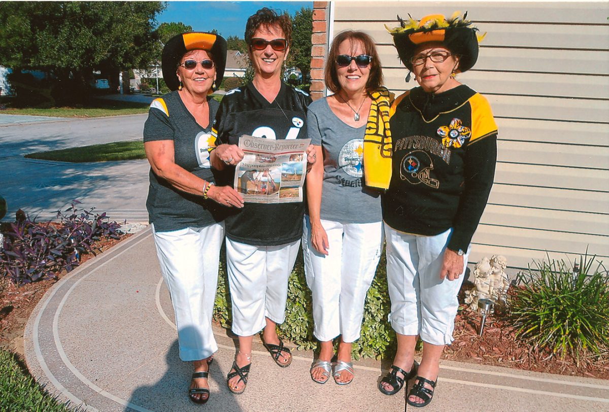 On Oct. 25, 2012, while visiting the Plantation in Leesburg, Fla., these Steeler fans showed their pride prior to the Redskins game. From left are Carole Dietz of Florida, formerly of Washington, Diane Chadwick, Rita Marra and Ellie Ruffalo.