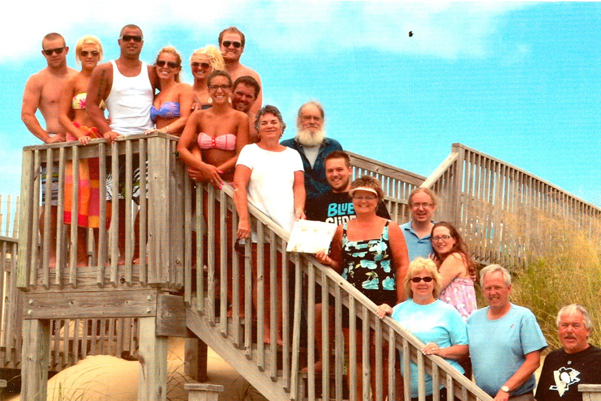 Gathering on the beach at Nags Head, for the wedding of Stacey Wood and Brendan Pester, were the Wood, McAnany, Zajac, Cahill, Pester, McKinney, Grose and Virgili families.