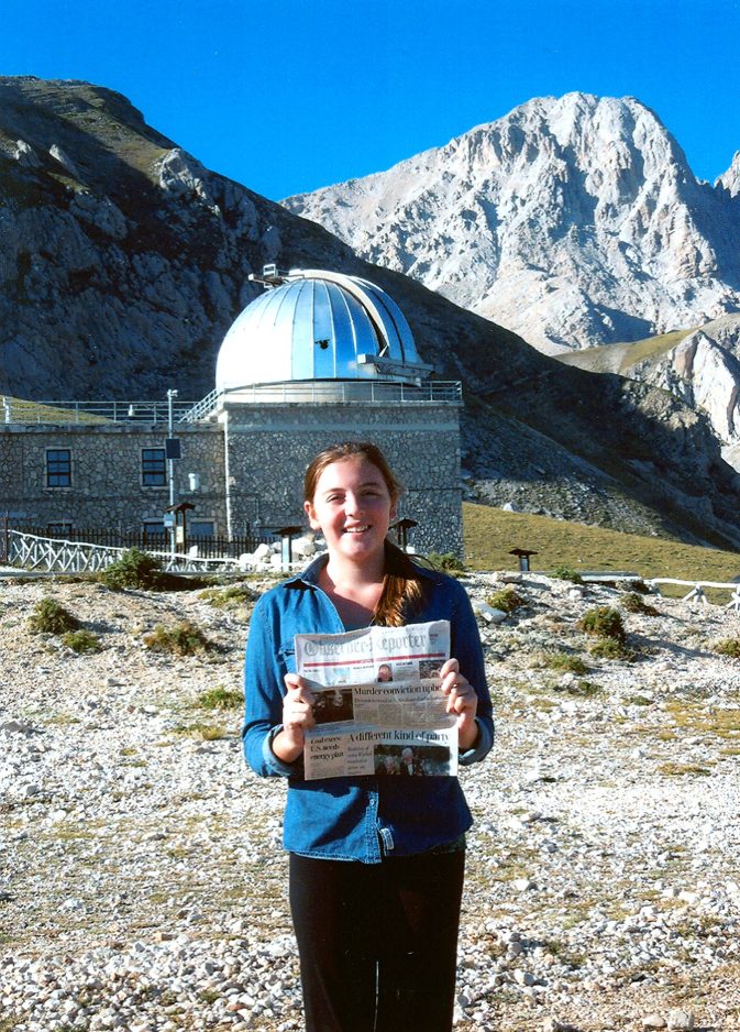 Carly Croft of Washington took the O-R to the Observatory of Campo Imperatore, elevation 7,218 feet, near the summit of the Gran Sasso Mountain in the Abruzzo region of Italy. Corno Grande, the highest peak on the Italian Peninsula, is shown in the background.