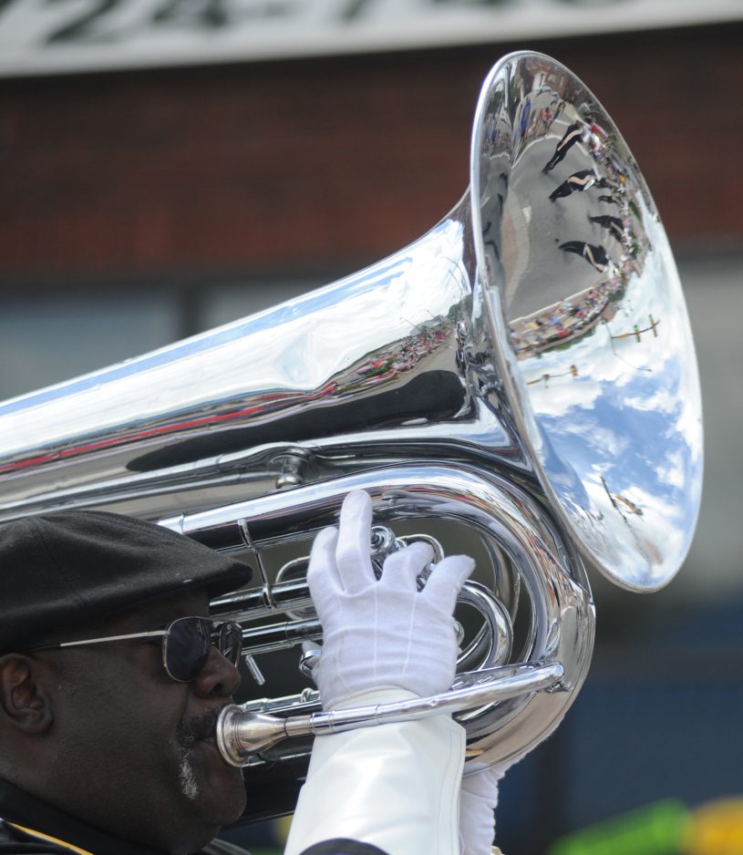 Katie Roupe / Observer-Reporter A member of the Mon Valley Express plays his way down the street during the Canonsburg 4th of July Parade.