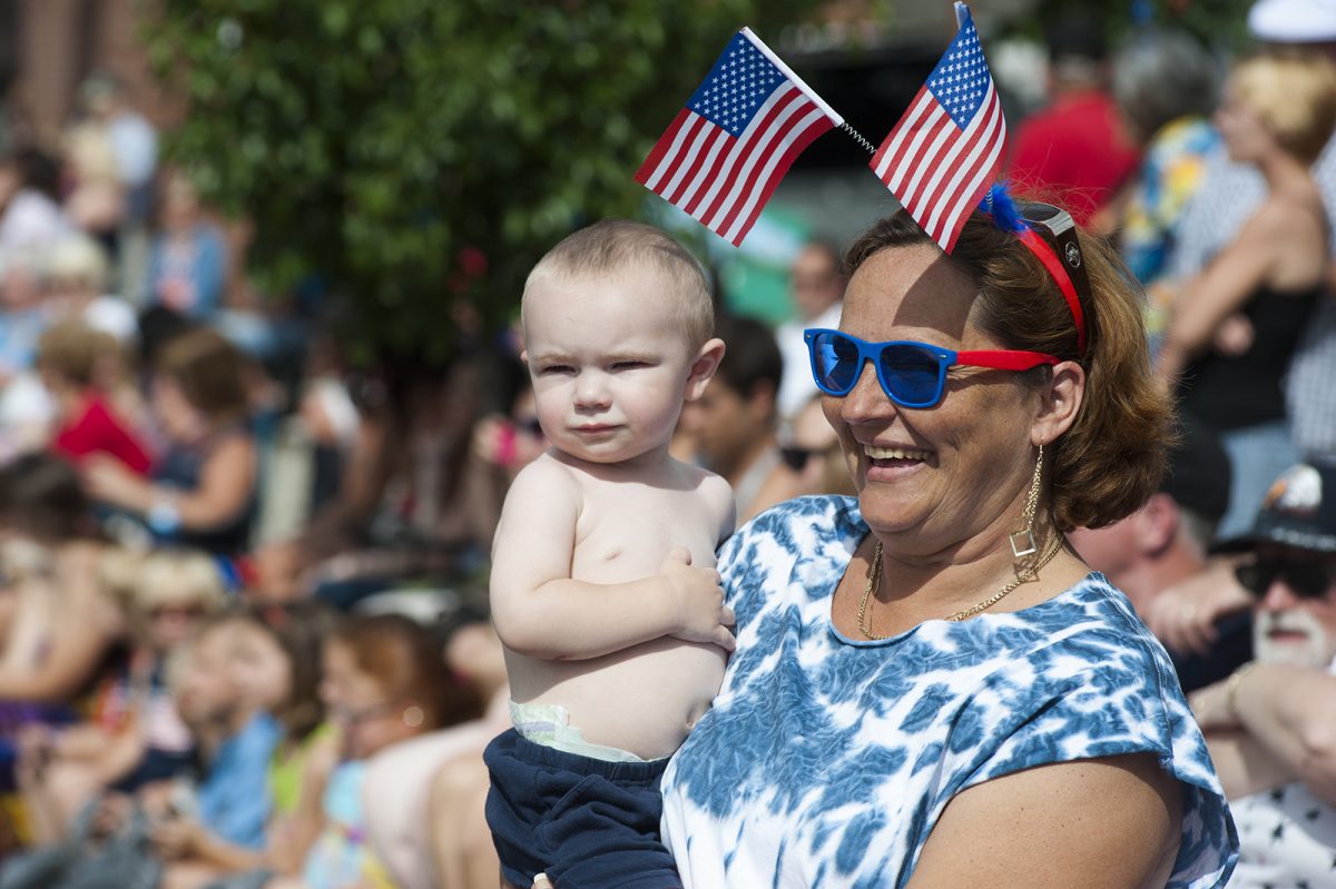 Emily Harger/Observer-Reporter Mary Tilger watches the start of the Canonsburg Fourth of July parade with her 2-year-old grandson, Liam Willberger.