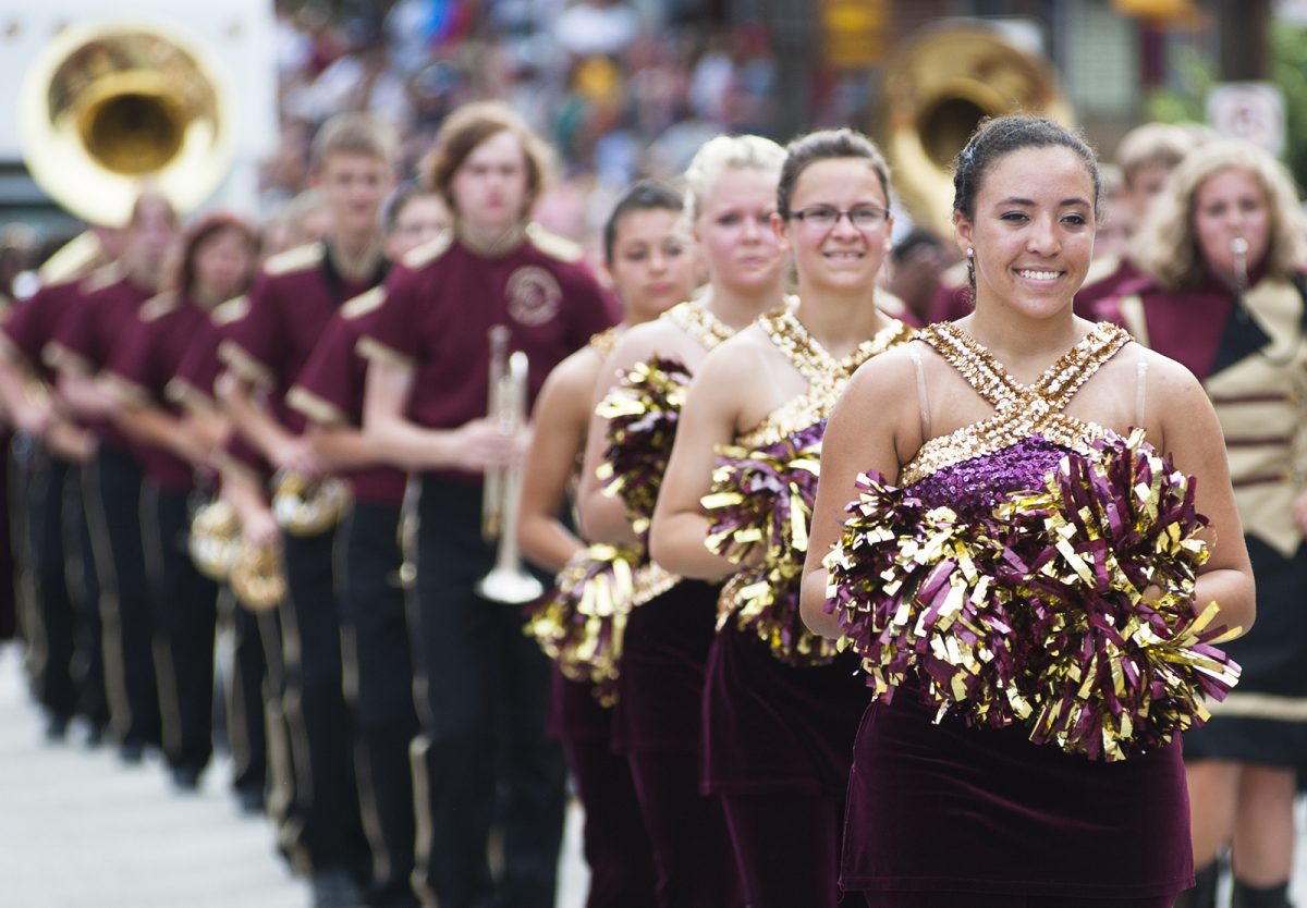 Emily Harger/Observer-Reporter Members of the Chartiers-Houston marching band parade through West Pike Street during the Canonsburg Fourth of July parade.