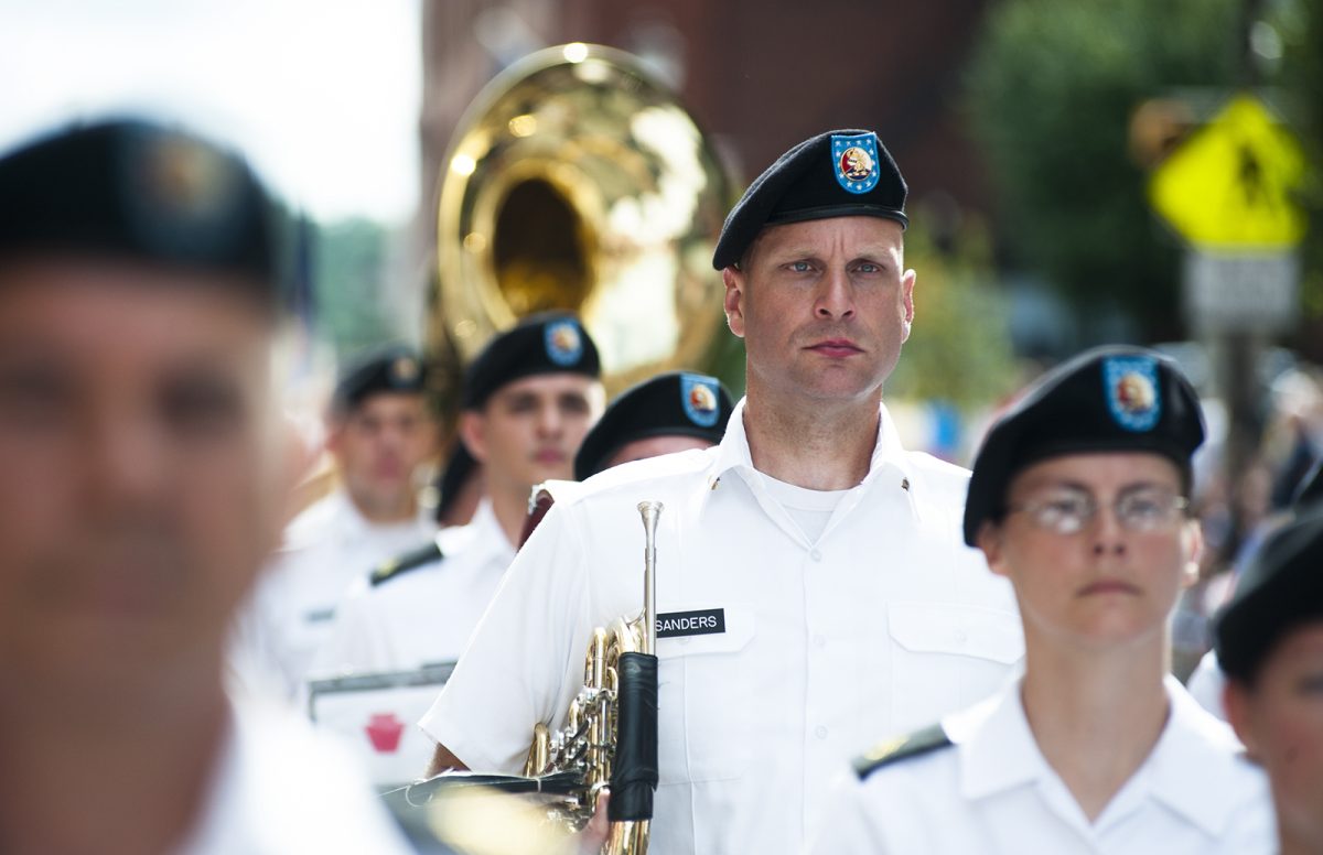 Emily Harger/Observer-Reporter Sanders of the Post VFW 191 21st Division Band entertain the crowd of the Canonsburg Fourth of July parade with patriotic songs on Thursday morning.