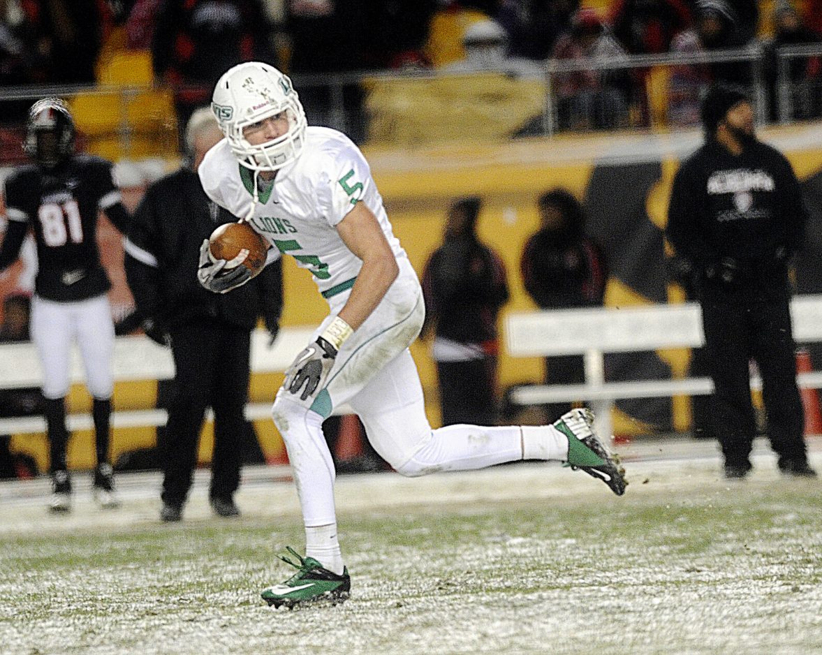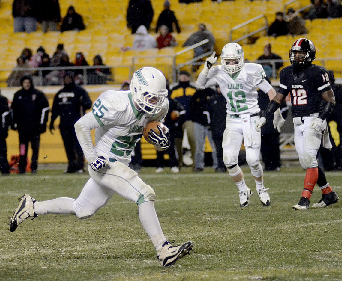 South Fayette’s Justin Watson runs the ball 68 yards after a pass from Brett Brumbaugh for a touchdown.