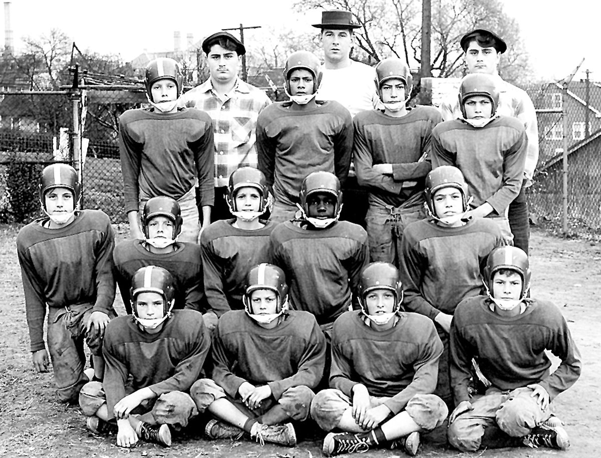 The other photo is of a Brownson House midget football team, taken in the 1950s. It would be only a few years before face guards were introduced to cut down the number of broken noses and lost teeth. Bare shins were OK for these boys, but their shoulders were well protected.