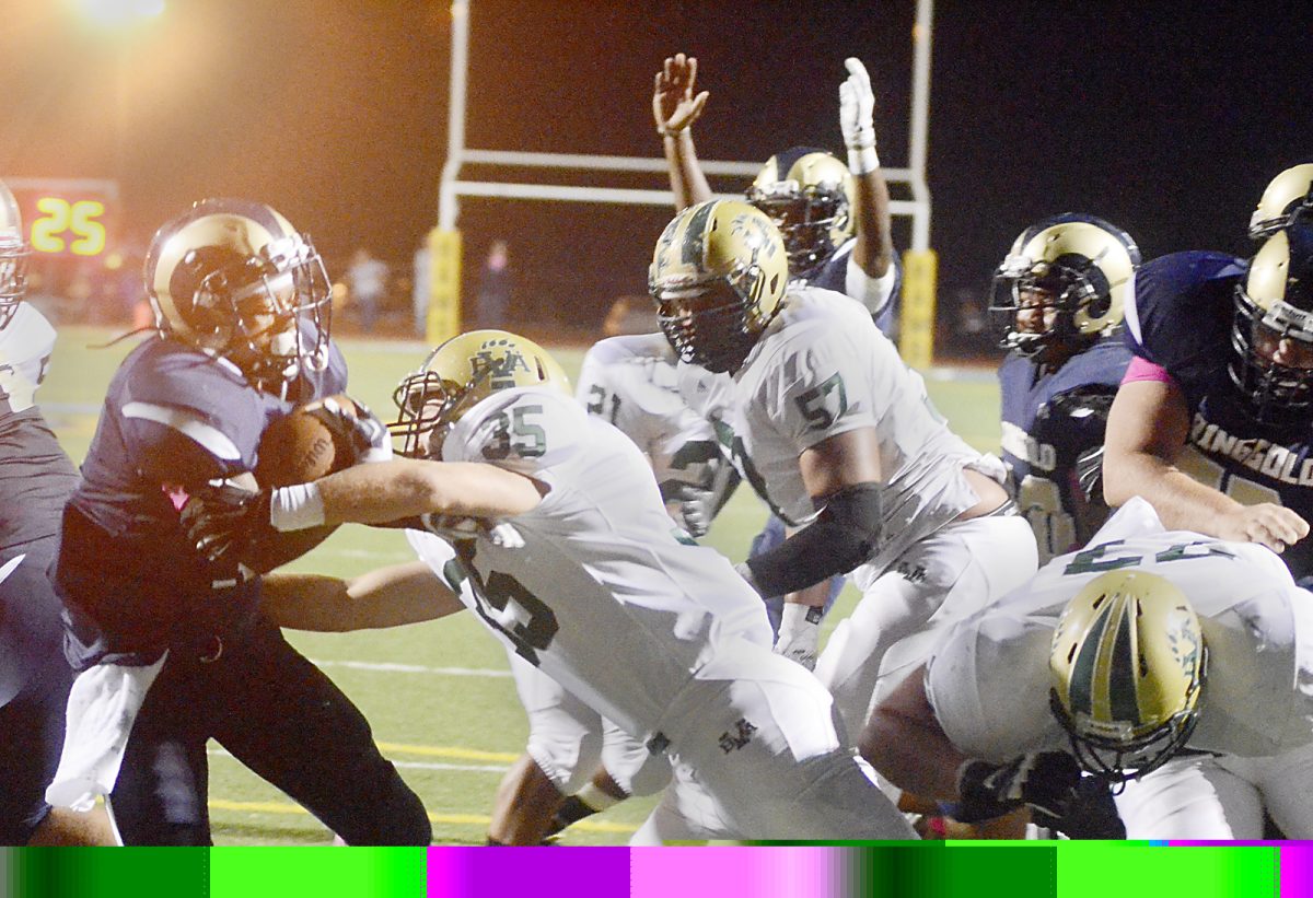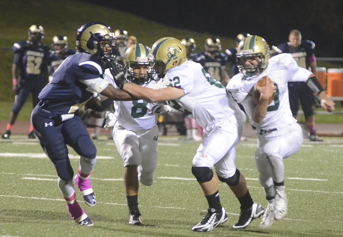 South Fayette’s Nick Ponikvar is tackled by Steel Valley during the first half of the game.