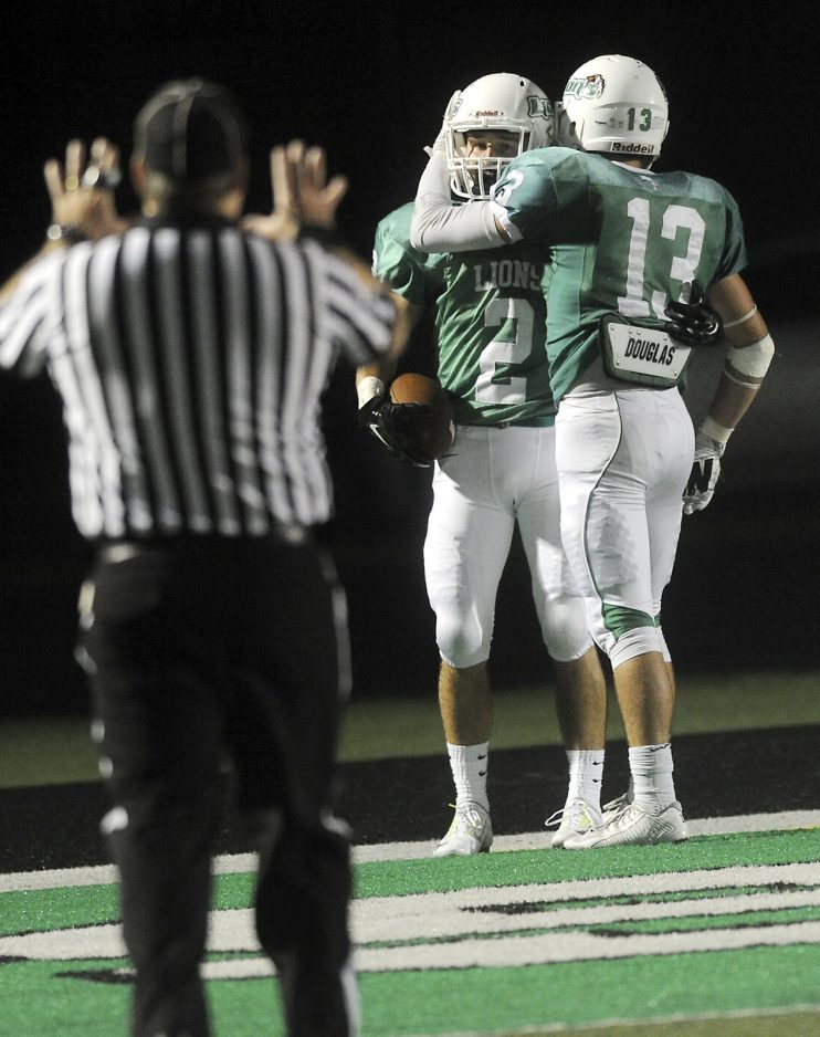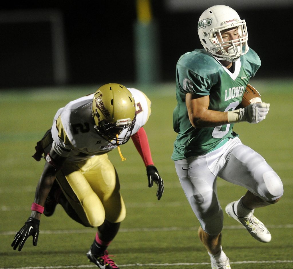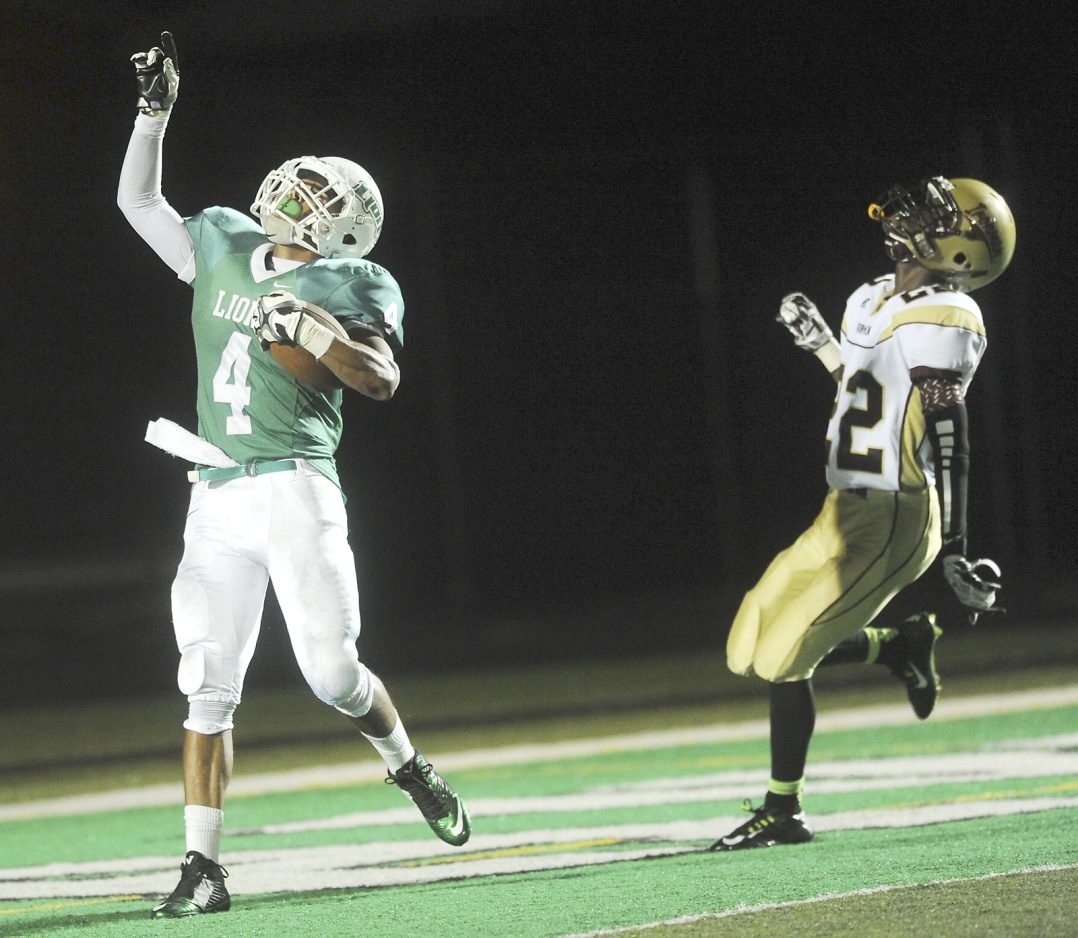 South Fayette’s Roman Denson scores a touchdown for the Lions during the first half of the game on Friday, October 3.