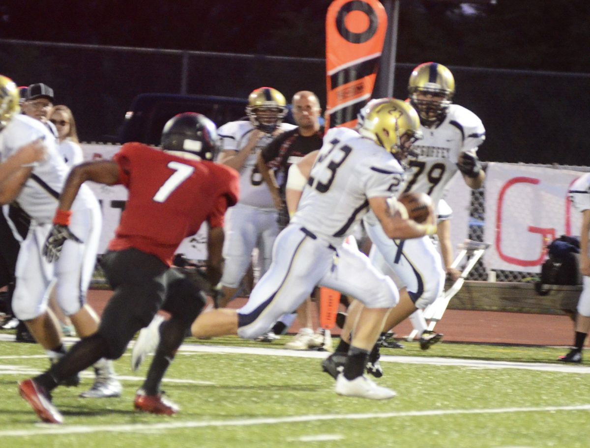 Beth Center’s Anthony Welsh runs the ball in for a touchdown during the first half of the game against Greensburg Central Catholic on Friday, September 5.