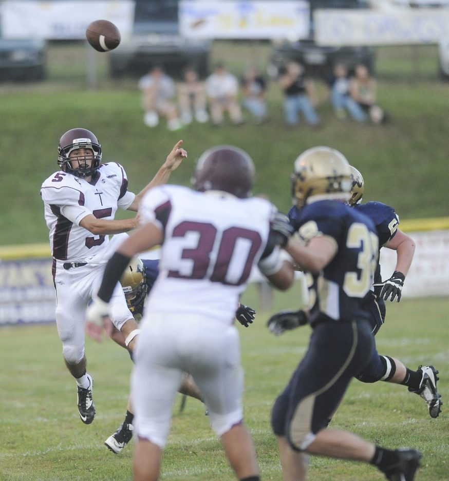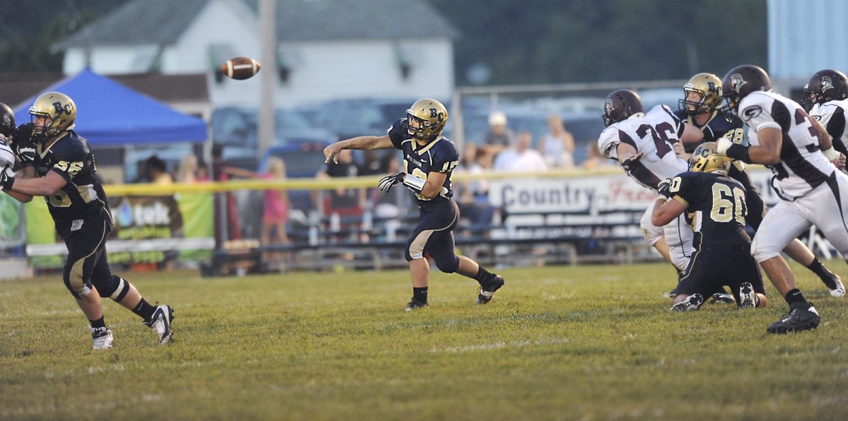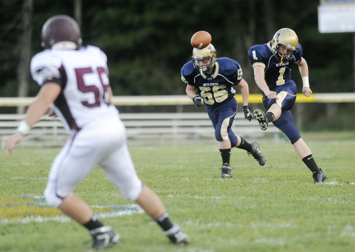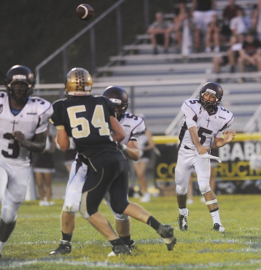 Beth Center’s Trent Cunko passes down the field during the game against Greensburg Central Catholic on Friday, September 5.