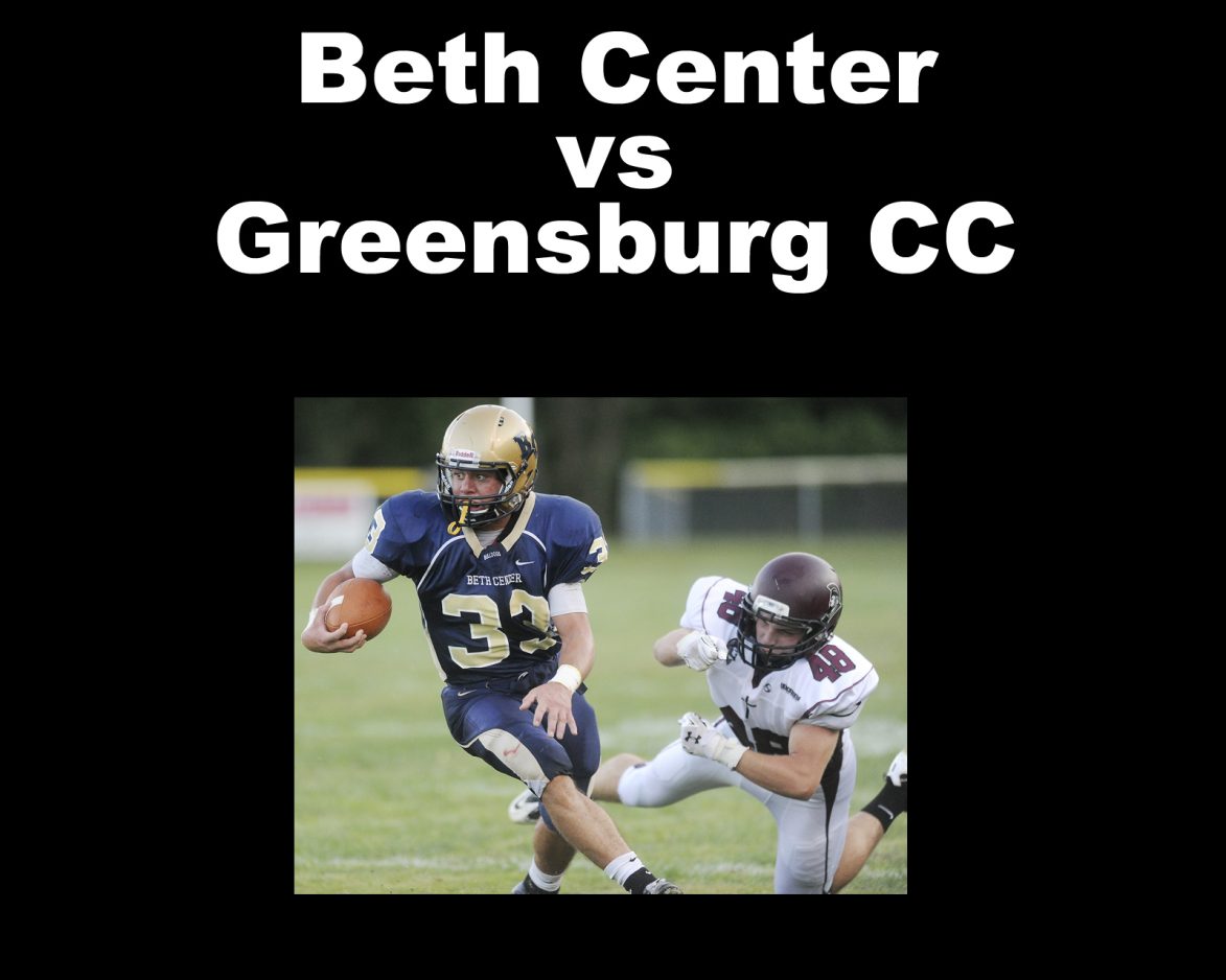 Beth Center’s Anthony Welsh gets a first down during the first quarter of the game while Greensburg Central Catholic’s Brian Pevarnik tries to tackle.