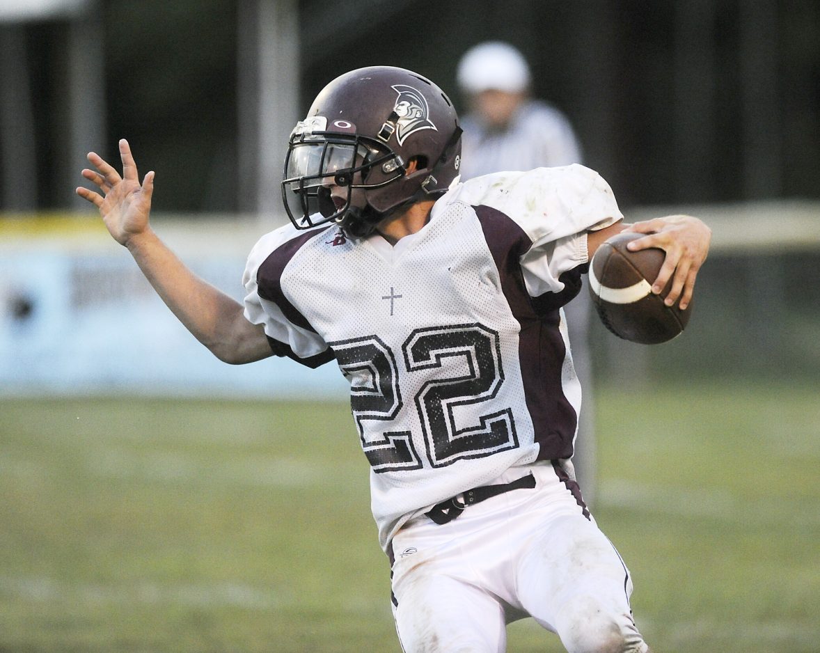 Greensburg Central Catholic’s Sam Nowicki carries the ball down the field during the game against Beth Center.
