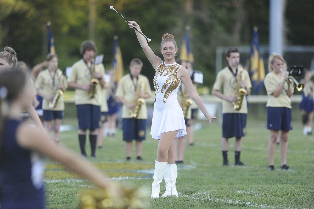 The Beth Center marching band, cheerleaders and majorettes perform before the start of the game on Friday, September 5.