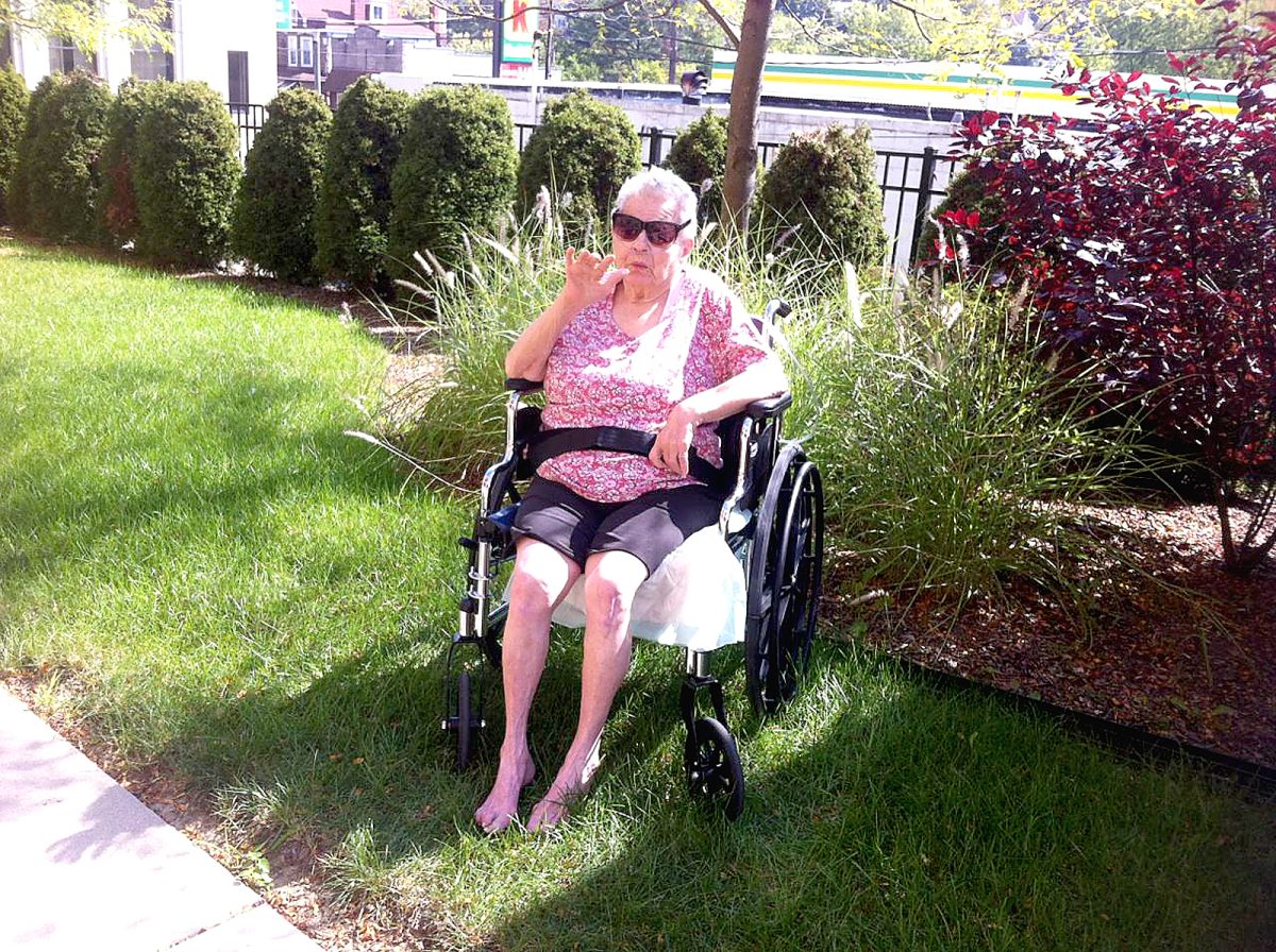 Anna Snatchko plants her bare feet in the grass outside her home at the Burgettstown Apartments for the Elderly. It’s the first time in years that Anna has gone barefoot in the grass.