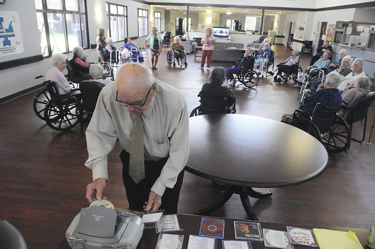 Dan Urbanik changes CDs while Washington County Health Center residents wait for the next song.