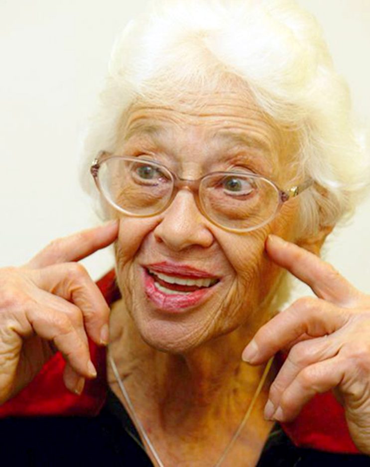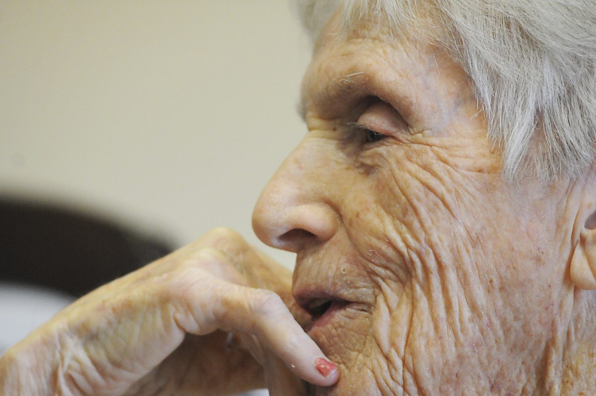 Anna Cowan flashes a rare smile as Gina Gina Iuliucci, Activities Coordinator for Woodside at the Presbyterian Senior Care can make the seniors smile and clap with singing and dancing to melodies from their earlier days.