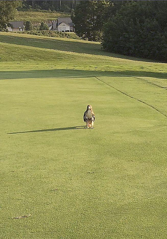 We've heard of ballhawks, but nothing like this. Vernie Dzura said this hawk landed on her peach-colored golf ball while she was playing at the Golf Club of Washington. She said the hawk stayed on the ball for 10 minutes. Trying to hatch it, maybe?