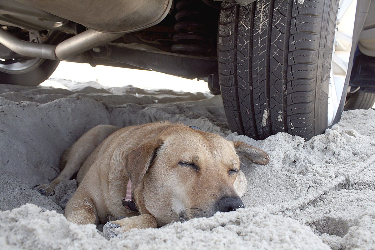 Thom Spagnol made a recent trip to the Outer Banks, where he drove on the beach in his SUV with his three dogs. His retriever mix, Bonnie, dug a hole in the sand under the vehicle to stay cool in the shade and take her nap.