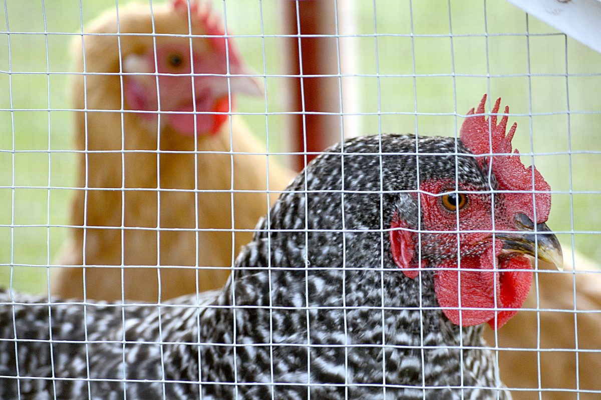 Kim Forrest took this photo of her backyard chickens, a barred Plymouth Rock and a buff Orpington. She said she hasn't named the chickens yet, in case she decides to eat them.