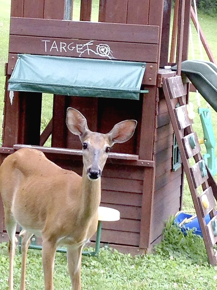 A bad place to stand? Staci Connolly said her 4-year-old daughter, Sofia, turned her outdoor playhouse into a Target, and then this deer stood right in front of it. Said Staci, "Oh, the irony!"