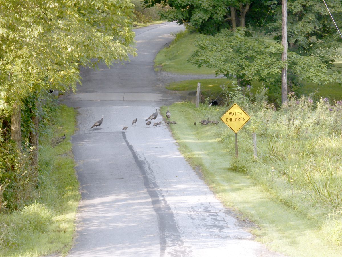 Now those are some smart birds. Myrta Litman took this photo of adult turkeys and their pullets crossing Taggart Road in Canton Township right next to a "Watch Children" sign.