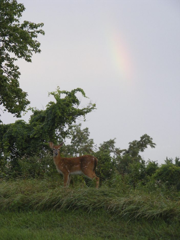 Sandy Rogers followed this rainbow to its end. What did she find? A young deer in Washington Cemetery.