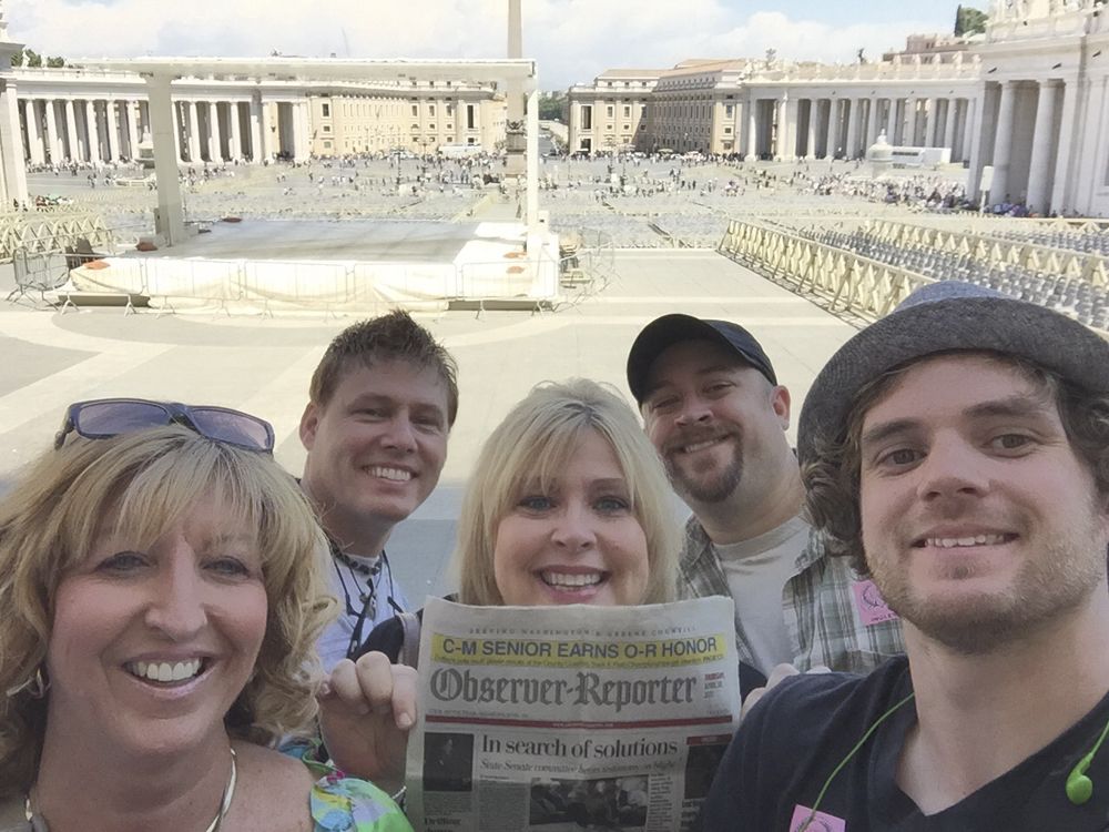 While on vacation in Italy, friends Joyce Kalakewich, Billy Arrington, Derek Cress, Susan Depew and Ben Kalakewich took the O-R along to visit Vatican City.