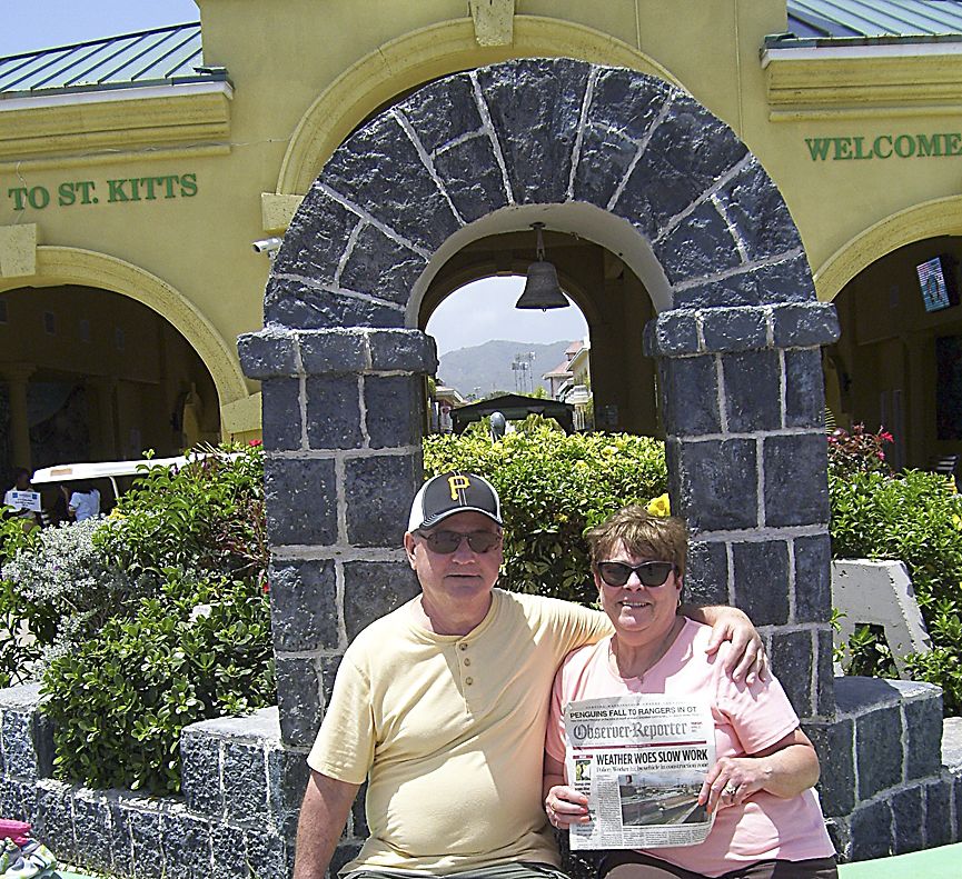 Joe and Carolyn Rendziak of Houston took the O-R along on a Caribbean cruise. They are pictured at the port of St. Kitts.