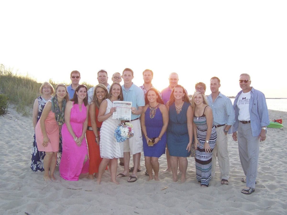 The O-R went to the wedding of Jonathan Taylor, formerly of Houston, Pa., and Julie Arnold, both of Cleveland, Ohio, Sept. 13, 2014, on Lewes Beach, Del. They are pictured with family and friends of Jonathan and Darlene Taylor of Houston and Paul and Karen Arnold of Mt. Vernon, Ohio.